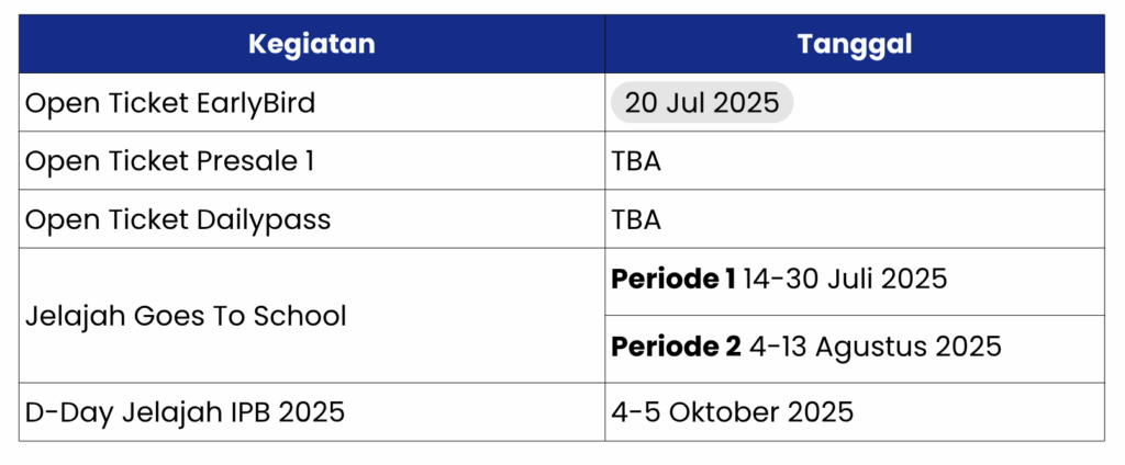 Jelajah IPB 2025 adalah event open house tahunan IPB University yang mengajak pelajar dari seluruh Indonesia menjelajahi dunia kampus, program studi, dan keunikan IPB University. Tahun ini, Jelajah IPB mengusung tema “The Hidden Wonderland of Knowledge”, yang menggambarkan IPB sebagai ruang penuh kejutan, peluang, dan pengalaman berharga di dunia pendidikan tinggi.